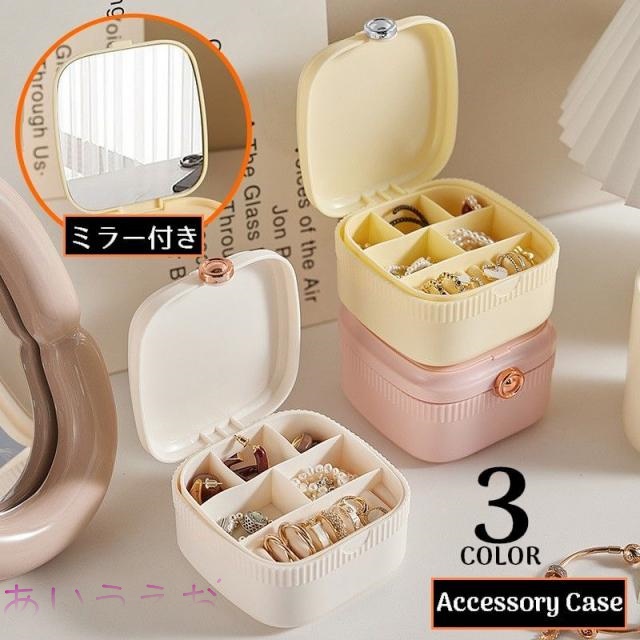 ■アクセサリーケース ジュエリーボックス コンパクト ミニ 2段 大容量 仕切り ミラー 鏡 携帯便利 収納 リング 指輪 ピアス
