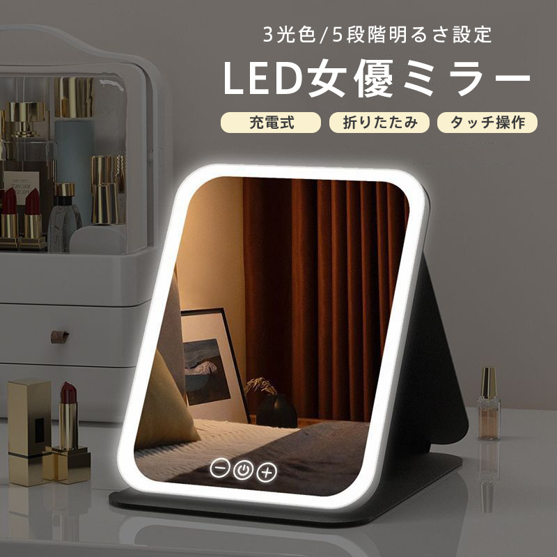 ■女優ミラー 卓上ミラー led 充電式 折りたたみ コンパクト ドレッサー 卓上 かわいい 折りたたみ 鏡 ライト 日光 軽量 ミ