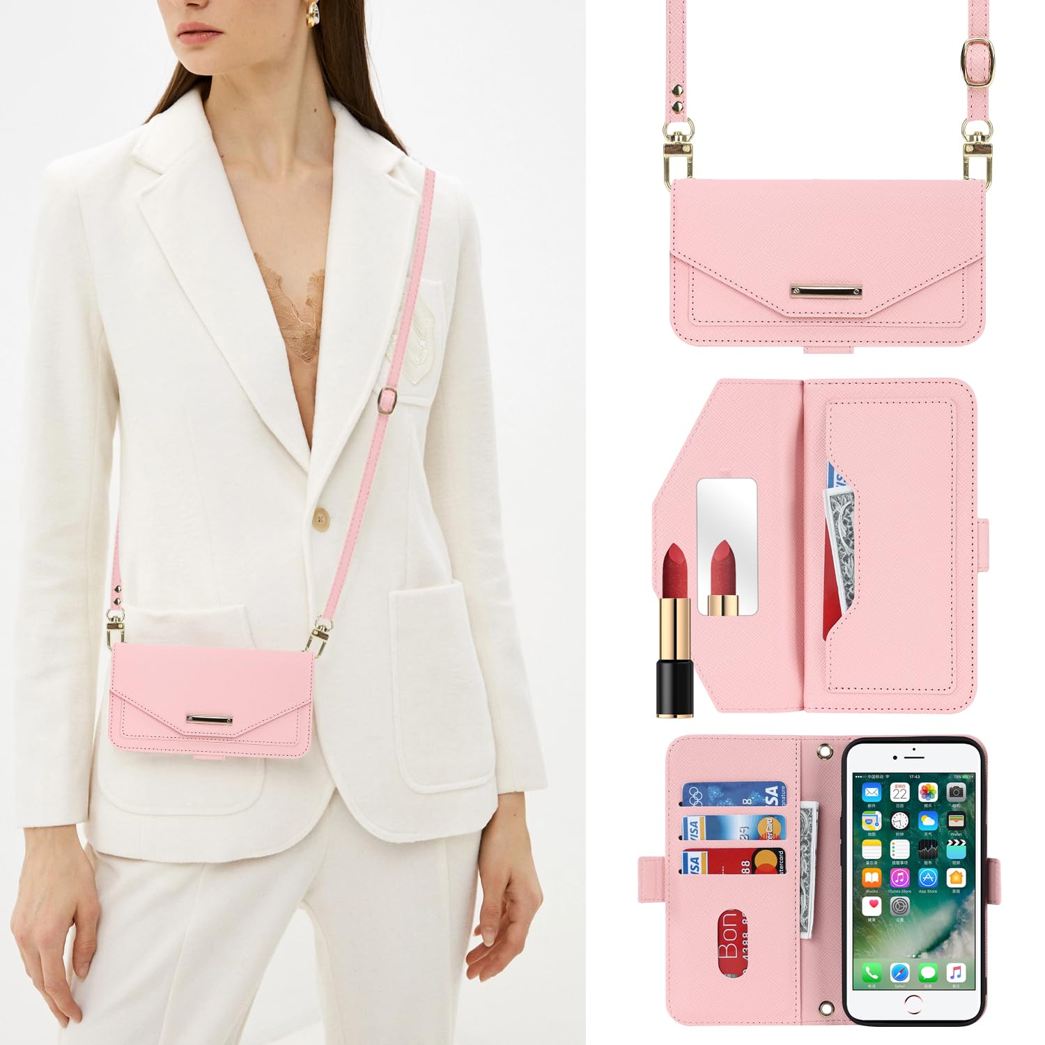 ■i Phone SE ケース ショルダー 鏡 第二世代 i Phone SE 第三世代 ケース 手帳型 i Phone8 ケース ミラー i Phone7 手帳型 ストラップ付き