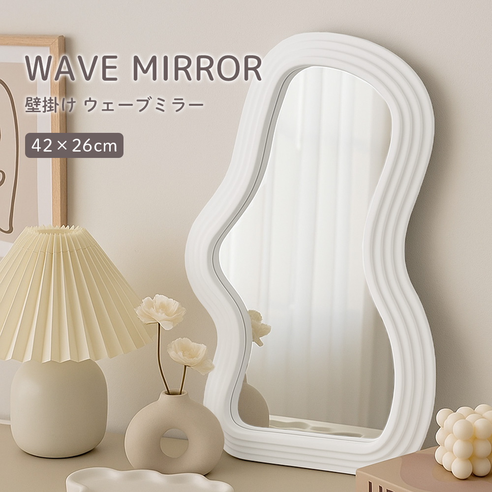 ■壁掛けウェーブ ミラー 韓国インテリア 姿見 韓国 鏡 スタンド 壁ミラー 幅43 高さ60cm 姿見鏡 おしゃれ ホワイト 軽量 一人暮らし 賃貸
