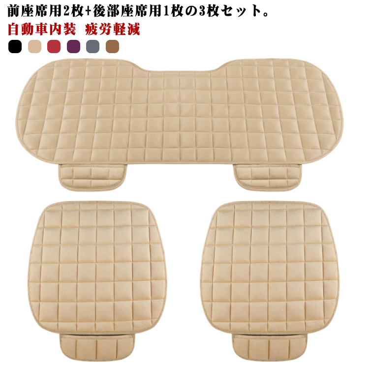 ■滑り止め 3点セット キルティング 自動車クッション 後座席 ふわふわ 車用 自動車クッション 前座席 シートクッション カー用品 座布団