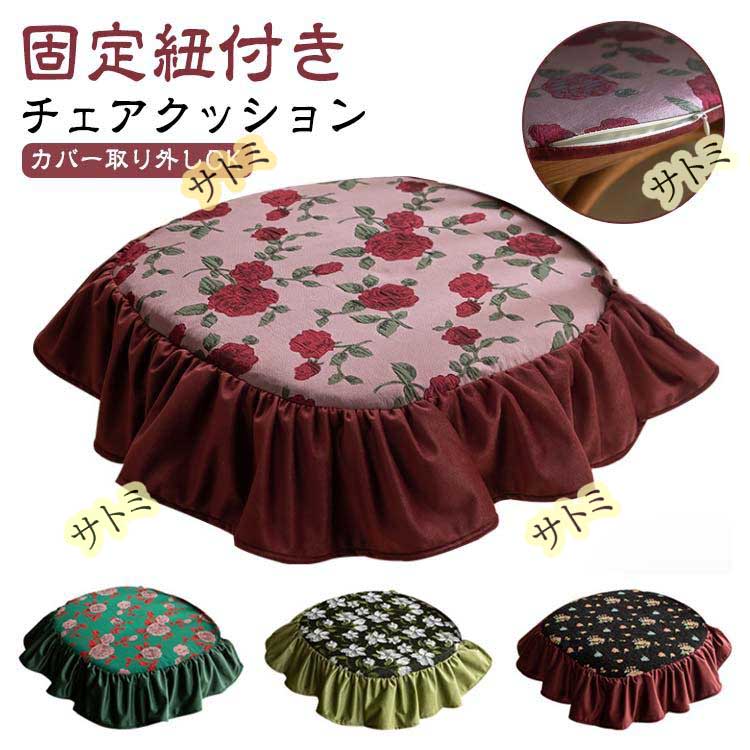 椅子 フリル付き 龍舌蘭 洗える 座布団 チェアクッション クッション キワタの花 山茶 45*45cm 花柄 フラワー 薔薇 クッション 紐付き 北