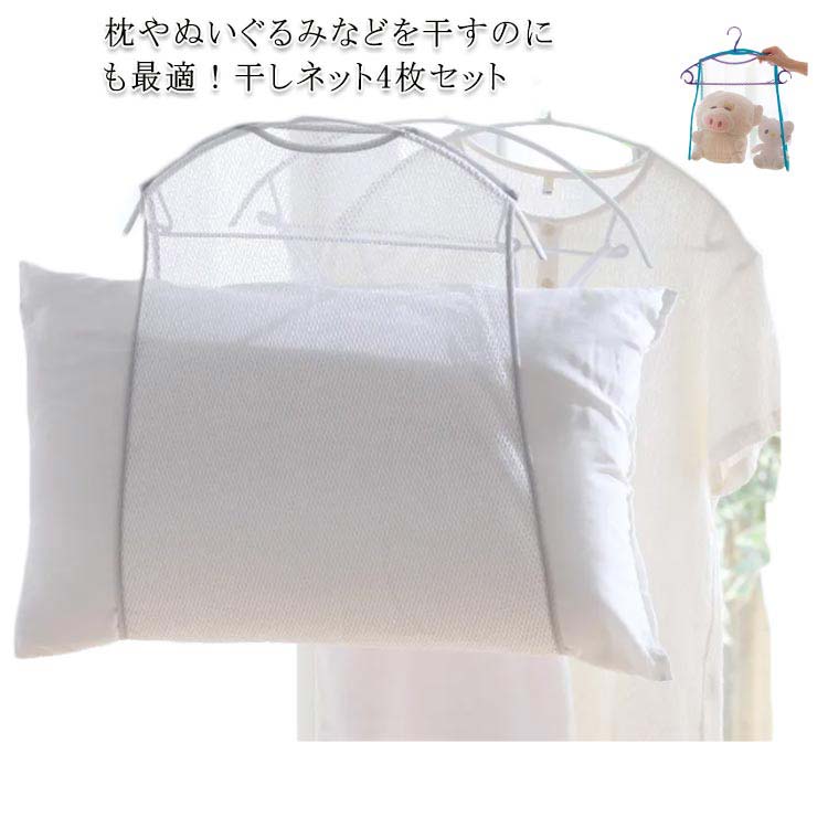 ■【送料無料】枕干しネット 物干しネット 洗濯物干しネット 4枚セット ぬいぐるみ対応 座布団 乾かす 物干しハンガー 枕干し袋 枕 まくら