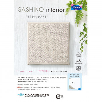 ■SASHIKO interior ファブリックパネル Flower cross 十字花刺し SK-438 【北海道・沖縄・離島配送不可】