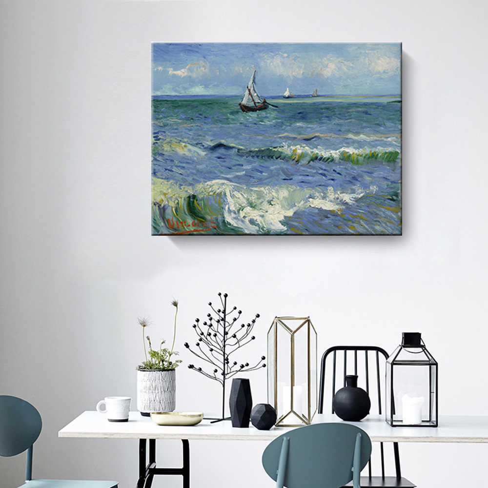■ファブリックパネル 絵画 インテリア 絵 アートフレーム サント=マリーの海の風景 ゴッホ プリキャンバス複製画 人気40×60cm 壁掛け お