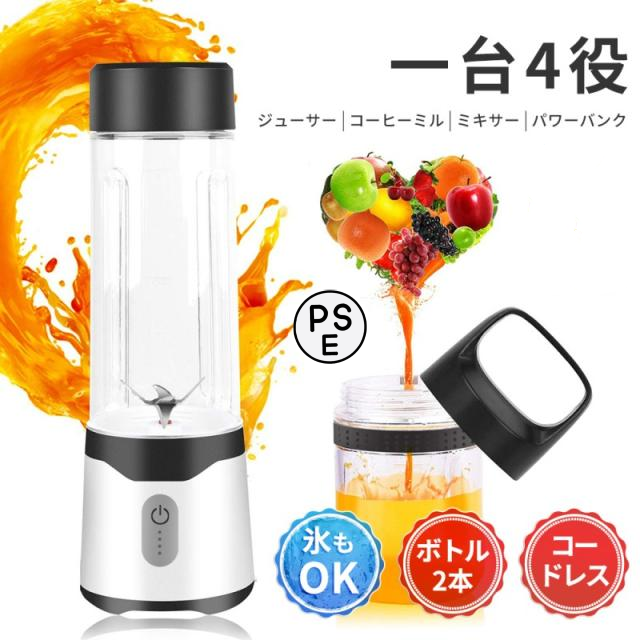 ■ミキサー ジューサー ブレンダー 1台4役コードレスコーヒーミルパワーバンク 丸洗い可 ダブル安全装置 usb ジューサ携帯コップ2つ 350ML/