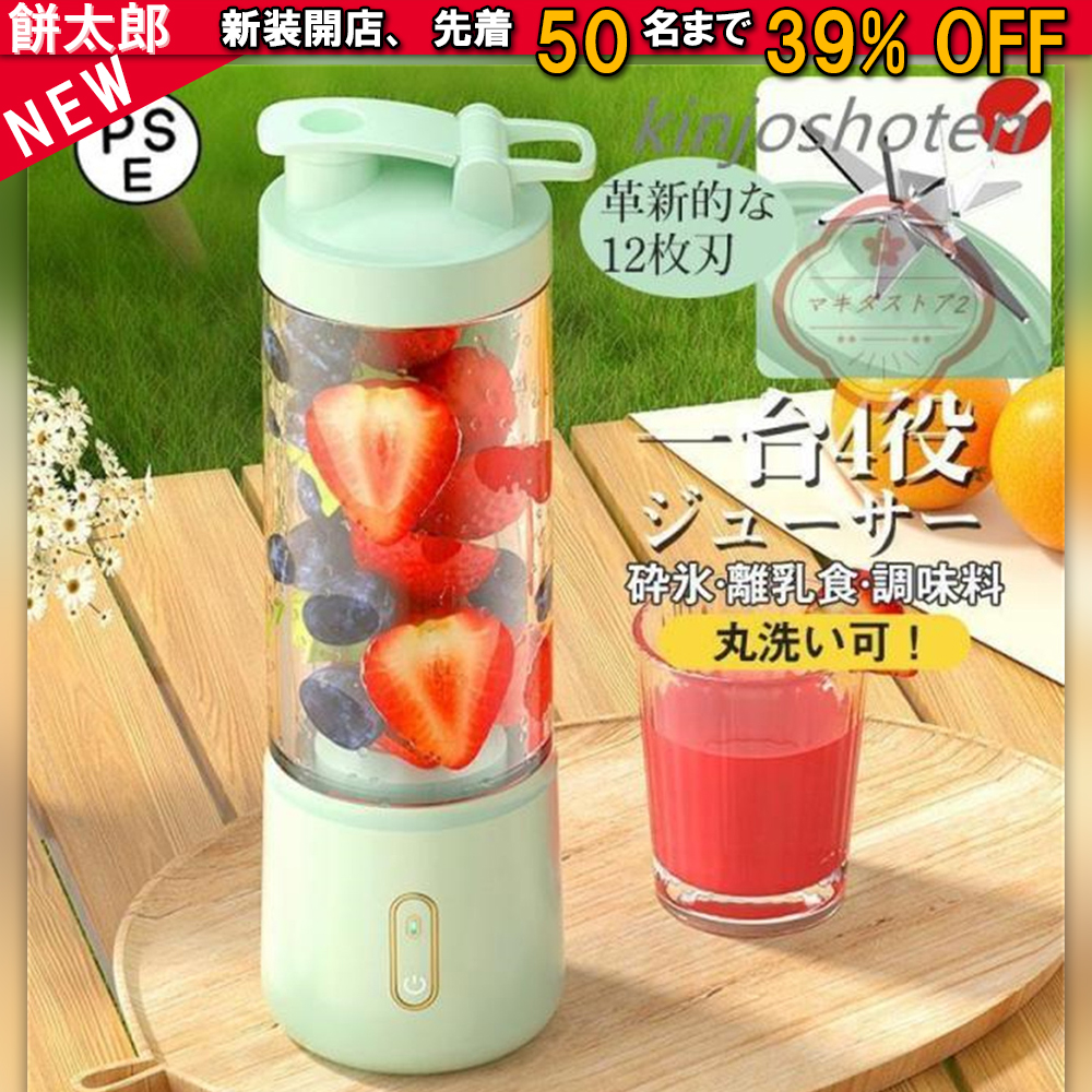 ■ボトル型ジューサー ビタミン急速補給 ジュースメーカー ミキサー 小型 ポータブルブレンダー ジューサー 300ml 40秒でジュースが作れる