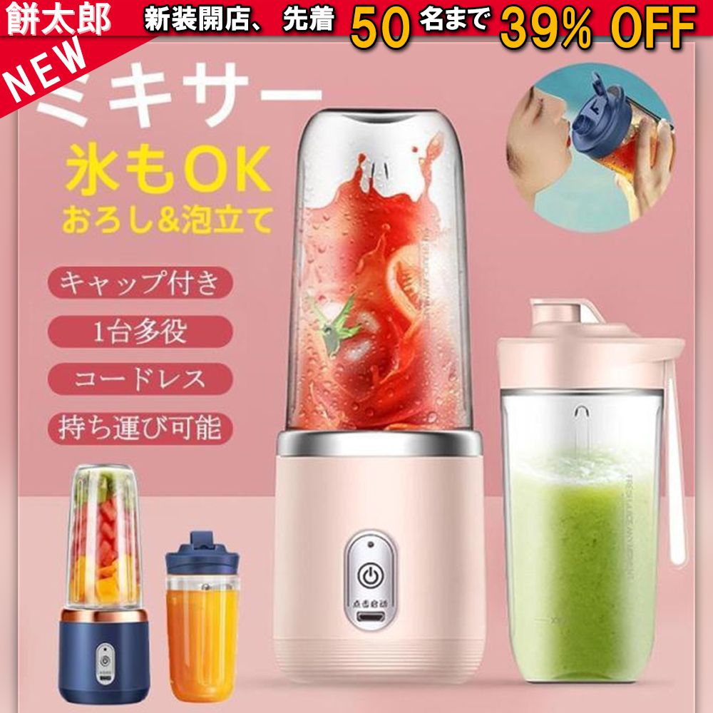 電動ジューサー ミキサー 小型 氷対応 洗いやすい 1人用 持ち運び 携帯式 ボトルミキサー コードレス 充電式ブレンダー スムージー プロテインシェイカー 離乳食
