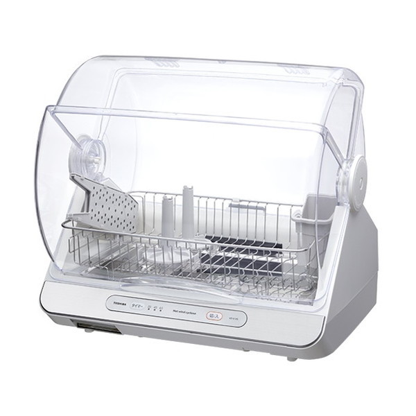 食器洗い乾燥機 電源::AC 100V(50/60Hz) 定格出力:1250W 重さ:8kg 使用水量:5L 製品機能:洗浄/消毒/収納 すすぎ方式:ためすすぎ 乾燥方法:余熱乾燥 容量目安:1-3人用 洗浄方式:回転ノズル噴射式+高温洗浄 外形寸法(約):幅45× 奥行40× 高さ 44cm 【360°回転式?70℃温水洗浄】360°回転式のノズルからのダブル水液で汚れを落とす。温水洗浄だから、しつこい油汚れもきれいに!70℃高温でしっかり除菌し、風乾燥で庫内の再結露を抑えます。食用油は一般的に40℃を超えると溶け出すと言われていて、人間では触ることのできない温度のお湯で洗える食洗機は、むしろ手で洗うより汚れが綺麗に落ちると考えられます。