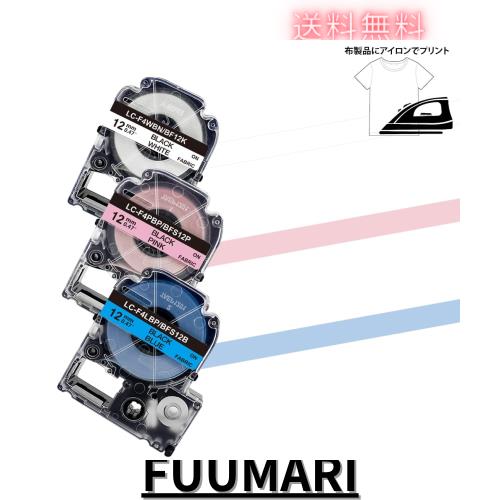 ■YUU テプラ アイロンラベル 12mm 互換 キングジム テプラ テープ アイロン 布用 テープ 青ピンク白地に黒文字 SFS12B SFS12P SFS12K テプ