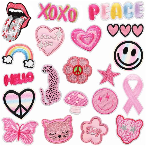 ■JnTech 女の子 アイロンワッペン アップリケ ワッペン アイロン 刺繍パッチ人気セット アイロン接着 パッチ 小さい サイズ ピンク 漫画