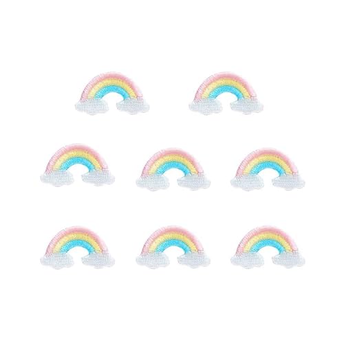 ■アイロン ワッペン アルファベット ベルクロ アップリケ おしゃれ 刺繍 入園 (小さい虹 8点-セット)