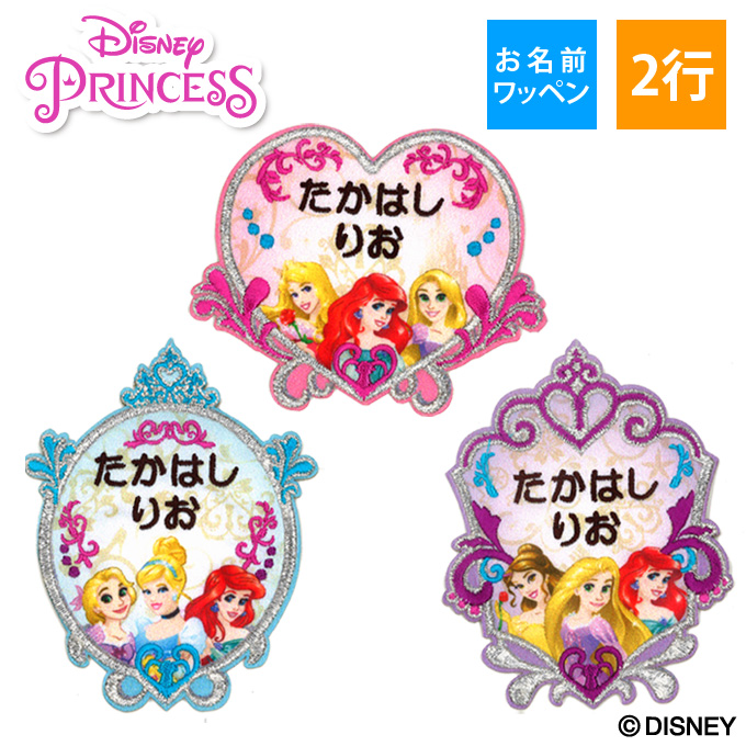 ■お名前ワッペン ディズニープリンセス ディズニー キャラ 2行 3枚セット ネームワッペン アイロン 入園 刺繍 プレゼント OR