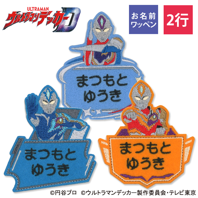 ■お名前ワッペン ウルトラマンデッカー キャラクター 2行 3枚セット ネームワッペン アイロン 入園 刺繍 プレゼント OR