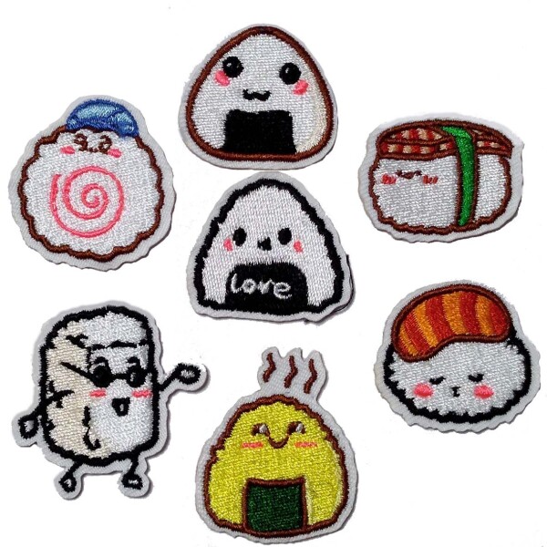 ■(LOLO import) かわいい おにぎり おすし ワッペン 刺繍 アップリケ アイロン 小さい 女の子 子供 入園 保育園 幼稚園 (O_おすし)