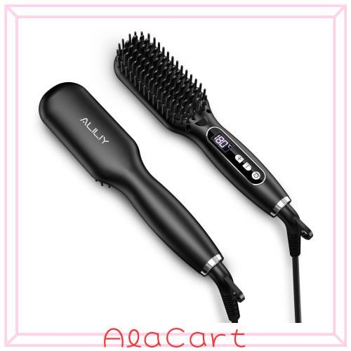 ■Aliliy ヒートブラシ ブラシアイロン【120〜200℃ 9段階温度調整 MAX200℃ 3000万マイナスイオン 潤いとつやのある髪 ヘアケア アイロン