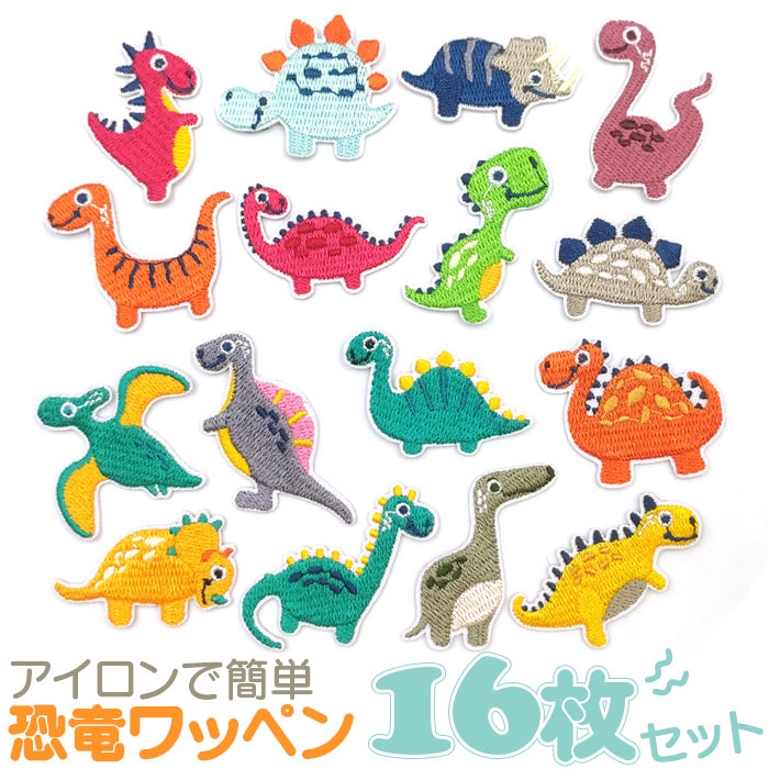 ■ワッペン 男の子 16枚 セット 通販 アイロン 恐竜 ダイナソー ミニワッペン アップリケ わっぺん 入園準備 入学準備 新入学 新入園 幼稚