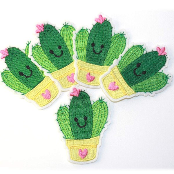 ■サボテン ワッペン アイロン アップリケ 保育園 幼稚園 などの目印に 5枚セット