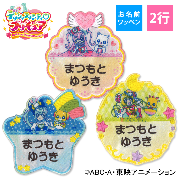 ■お名前ワッペン デリシャスパーティプリキュア キャラクター 2行 3枚セット ネームワッペン アイロン 入園 刺繍 プレゼント OR