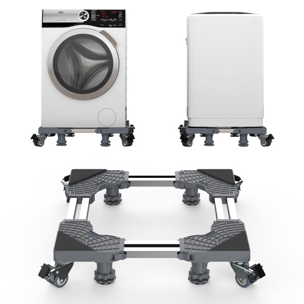 ■DEWEL 洗濯機 台 冷蔵庫 台 キャスター付き 置き台 伸縮式 ャッキ付き 360度回転 防振 長さ調節 サイズ調整可能 異音振動軽減 移動ラクラ