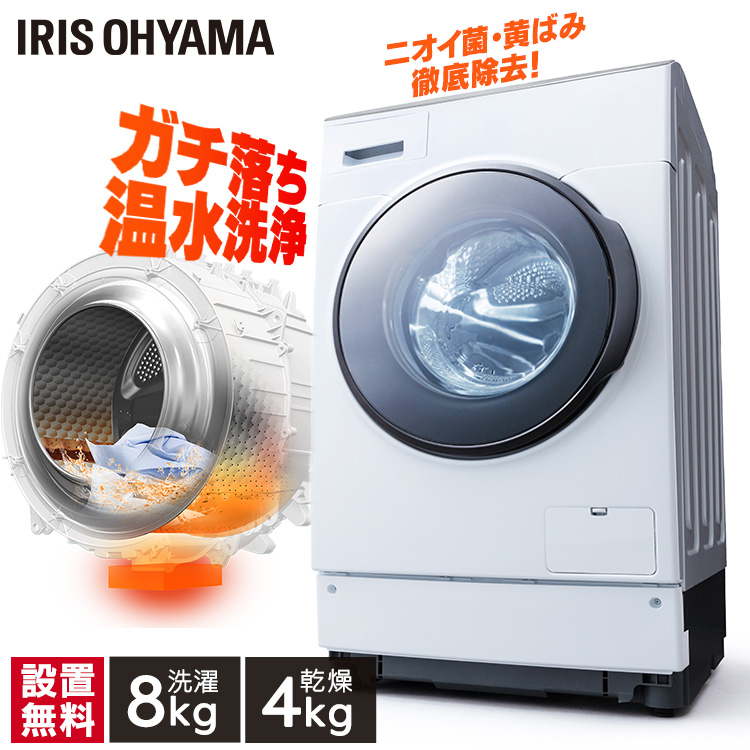 ■洗濯機 ドラム式洗濯機 8kg アイリスオーヤマ FLK842 洗濯 ドラム式 洗濯機 ニオイ除去 黄ばみ除去 徹底除去 部屋干し 布団 タイマー予約