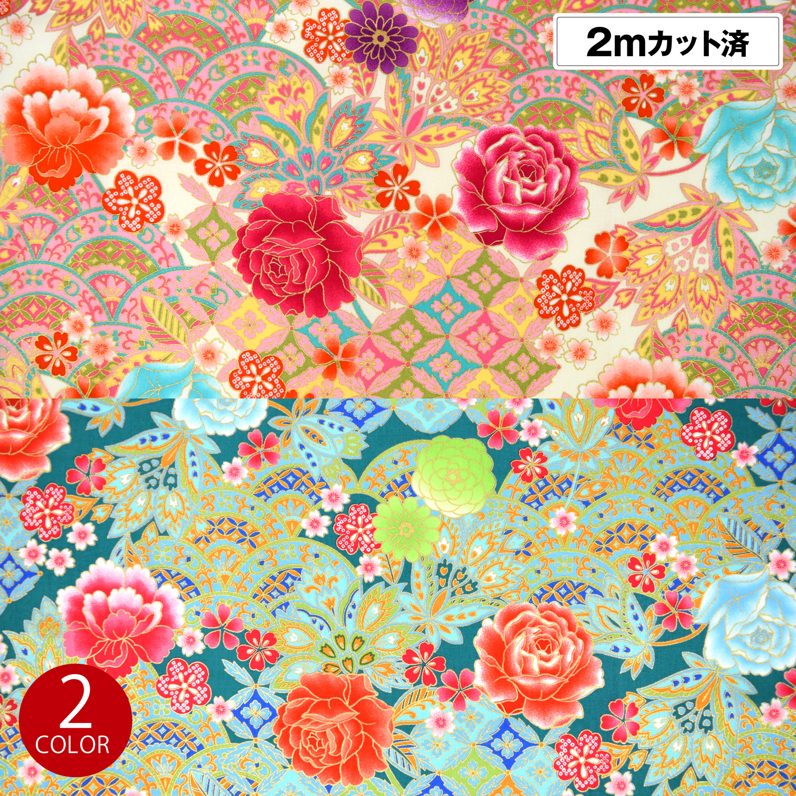 注)生地のみの販売です。 ※数量「2」でご注文いただいた場合、カット商品×2点でのお届けとなりますので、ご注意下さい。 ■商品によって素材独特の糸フシやネップ、染めムラ、糸つれ、糸引きなどがある場合がありますので予めご了承の上、ご注文ください。 ■生地裁断の場所により、柄ゆきが一つ一つ異なる場合がございます。 ■カット商品ですので、返品・交換はお受けできませんのでご了承ください。 【詳細】 平置実寸サイズ:約110cm巾(生地耳含まない)×2mカット済 素材:コットン100% ■可愛らしく華やかな花柄の和柄生地。 ■綿100%なので縫いやすく、様々な用途に使用できます。 ■和装小物や巾着・インテリア用品などオリジナル作品を作ってみませんか♪