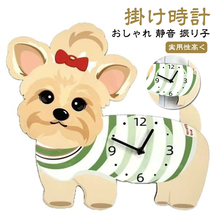 ■壁掛け時計 おしゃれ 静音 壁掛け クロック 掛け時計 電池 かわいい犬 かけ時計 ヨークシャーテリア犬 時計 音がしない 電池式 オシャレ