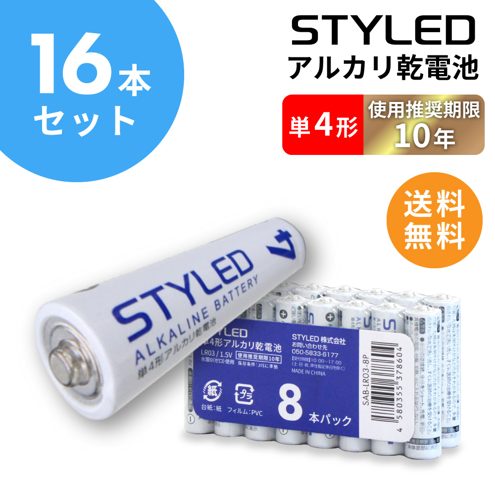 ■【メール便送料無料】乾電池 アルカリ乾電池 単4 送料無料 電池 単4形 16本セット STYLED