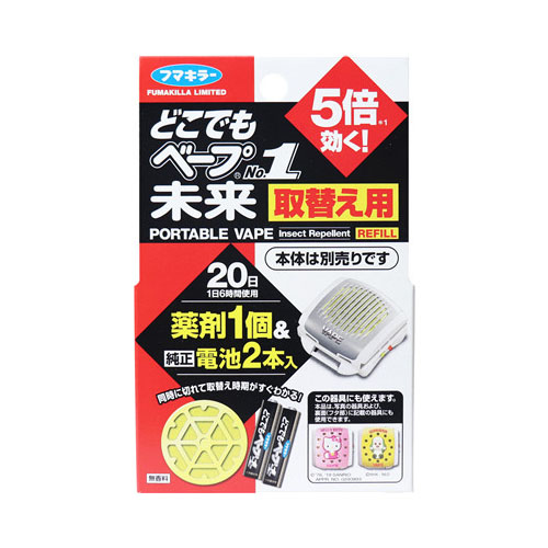 ■フマキラー どこでもベープNo.1 未来取替え用 薬剤1個+電池2本入 メール便送料無料