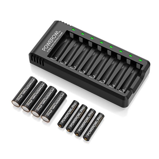 ■POWEROWL 充電式 単3 単4電池 プロ 8スロット充電器付き 高容量 1100MAH 2800MAH プレミアム ニッケル水素 単3 単4電池 8個セット