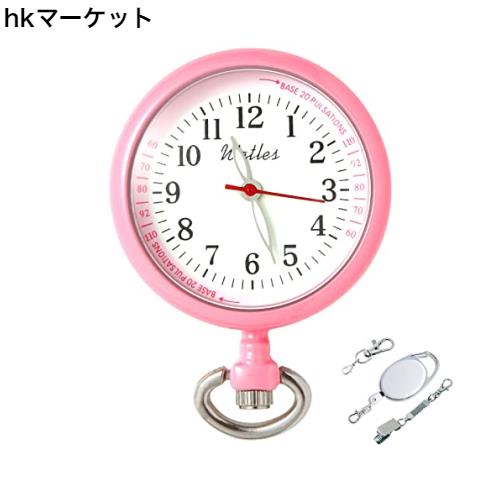 ■Watles ナースウォッチ 懐中時計 日本製クォーツ&電池 逆さ文字盤 電池交換可 防水 蓄光 3種のチェーン (Pink)