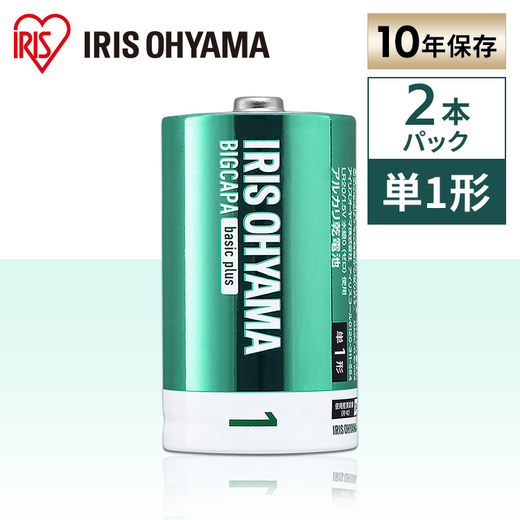 ■BIGCAPA basic+ 単1形アルカリ乾電池2本パック LR20Bbp/2S 乾電池 アルカリ乾電池 単1 単1形 単一 単一形 電池 バッテリー 2本 アイリ