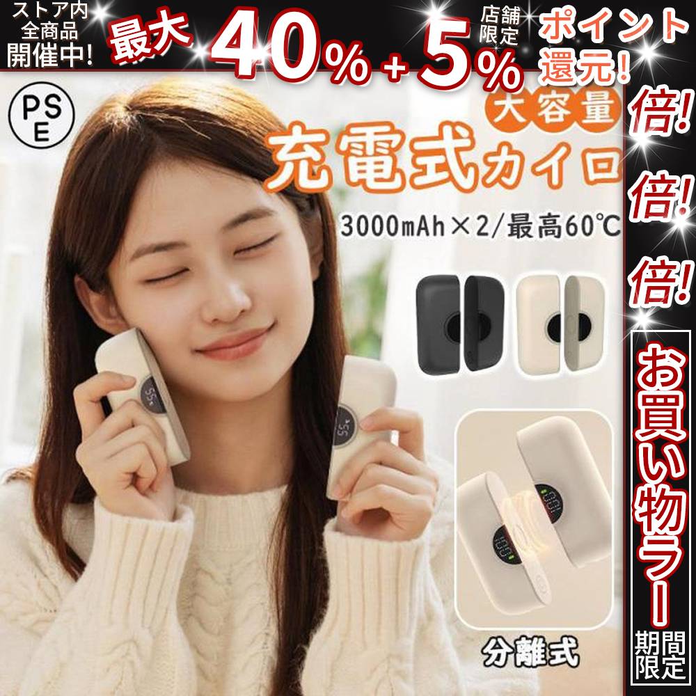 ■クーポン対象 年末セール 充電式カイロ 大容量 ハンドウォーマー 電気カイロ あんか 電熱 携帯 分離式 3000mAh×2 最高60℃ 充電器 使い