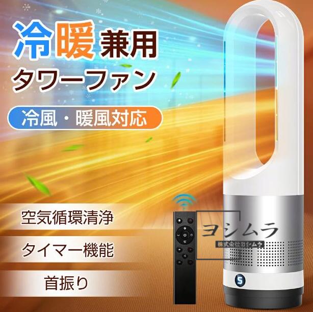 タワーファン セラミックヒーター サーキュレーター 冷暖兼用 扇風機 DCモーター 羽なし ファンヒーター 暖房器具 省エネ ヒーター 循環 静音 スリム 大風量 冷暖タイプ リモコン タイマー 首振り 3段温風 転倒OFF PSE 節電 リビング