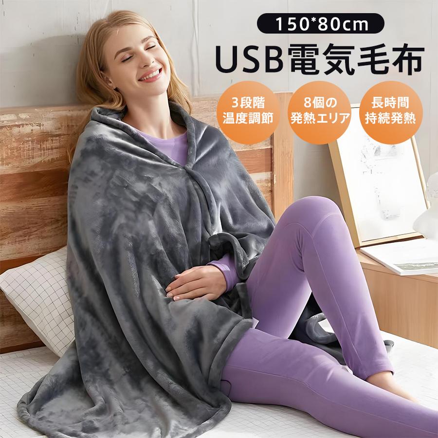 ■電気毛布 USB式 ひざ掛け 洗える 掛け敷き兼用 加熱毛布 USB給電 ブランケット 電気肩かけ 内蔵ヒーター フランネル 暖房器具