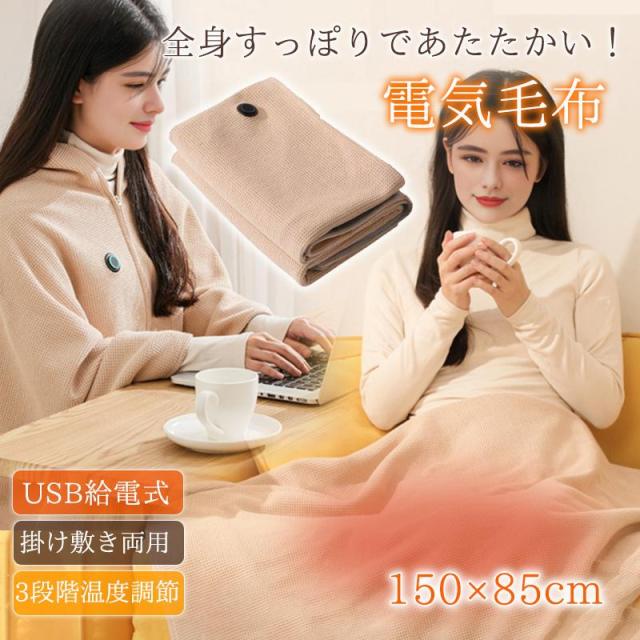 電気毛布 着る毛布 電気ひざ掛け ブランケット 150×70cm USB ニット ワッフル生地 掛け敷き 電気 ひざ掛け ヒーター 洗える 防寒対策