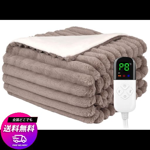 ■電気毛布 ラビットファー調毛布 掛け敷き兼用 電気ブランケット 190x130cm 8段階温度調節 6段階タイマー 日本語説明書付き PSE認証済み