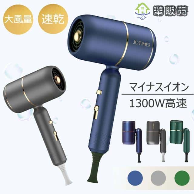 ■大風量 & 軽量★1300W マイナスイオン!収納 折り畳み式 コンパクト 速乾 ドライヤー マイナスイオン 3段階調整 マイナスイオンドライヤー