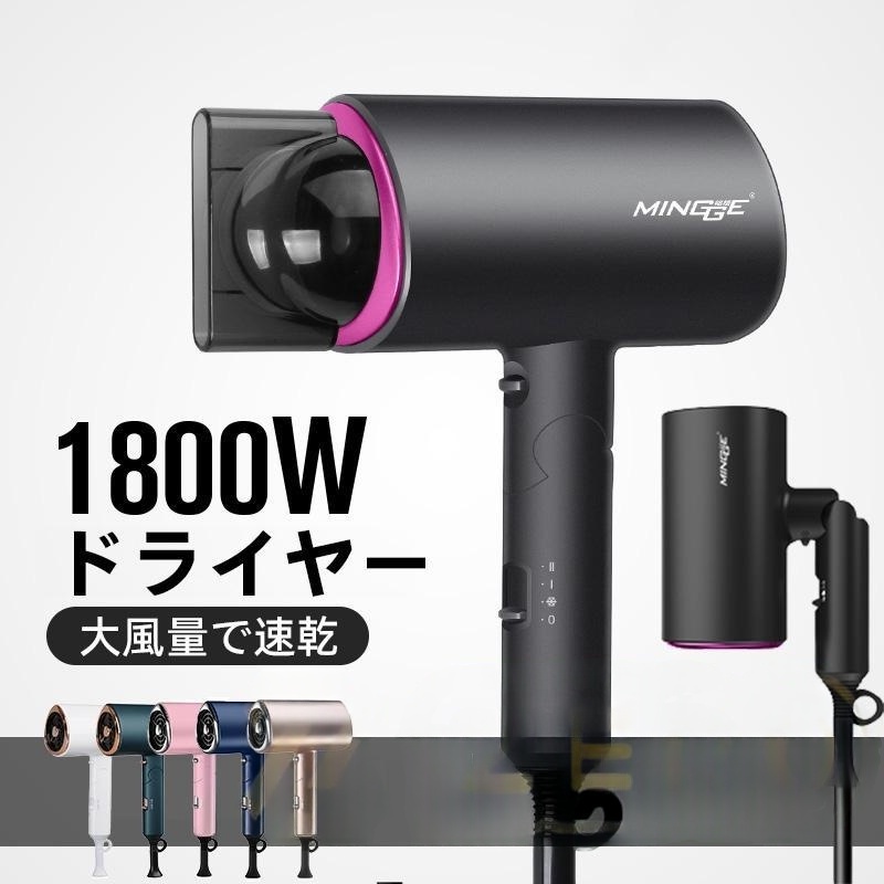 大風量 & 軽量★1300W マイナスイオン!収納 折り畳み式 コンパクト 速乾 ドライヤー マイナスイオン 3段階調整 マイナスイオンドライヤー 57℃恒温機能 ノズル付き