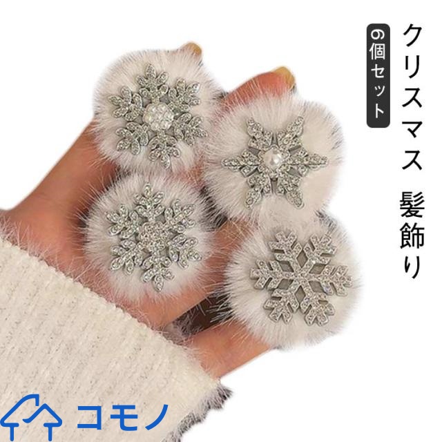 ■女の子 クリスマス キラキラ もこもこ サイド 雪花 子供 髪飾り ヘアクリップ ガールズ ヘアーアクセサリー 6個セット 髪飾り クリスマス