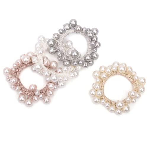 ■E BIANHUAN ヘアゴム パール おしゃれ かわいい シュシュ ヘアアクセサリー 髪留め まとめ髪 ボリューム シンプル 大人 上品 ゴールド ベ