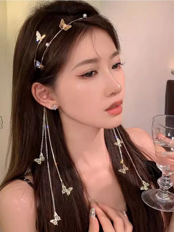 ■ヘアアクセサリー カチューシャ 髪飾り ヘアフープ ラインストーン 蝶 バタフライ 二次会 発表会 結婚式 入園入学 卒園卒業 送料無料
