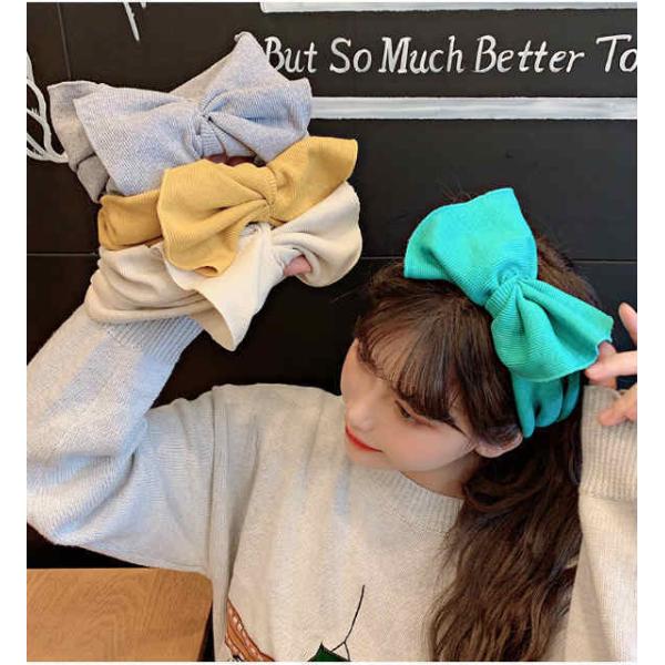 ■レディースアクセサリー ヘアアクセサリー ヘアバンド 韓国風 ニット リボン ヘアバンド ヘッドバンド 大きいリボン 全9色 送料無料