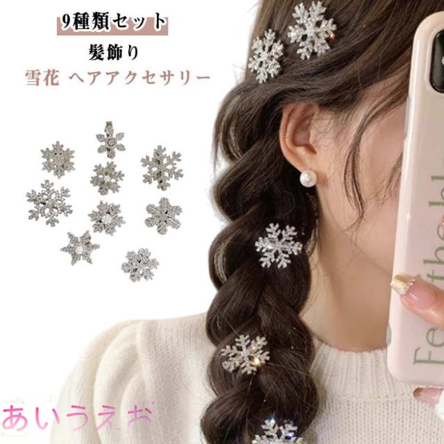 髪飾り ヘアクリップ クリスマス クリスマスアクセサリー コスプレ 9個セット ヘアーアクセサリー 雪の結晶 スノーフレーク 雪花 髪飾り クリスマス キラキラ ラインストーン ヘアクリップ サイド 髪飾り 髪飾り レディース ガールズ
