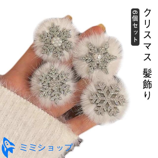 ■もこもこ 雪花 髪飾り クリスマス ヘアクリップ ガールズ キラキラ ヘアーアクセサリー 子供 髪飾り 6個セット 雪の結晶 女の子 クリスマ