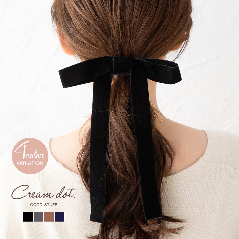 ■【ゆうパケット送料無料】ポニーフック ベロア リボン ロングリボン 長め ベルベット ヘアフック ヘアカフス ヘアゴム 大人っぽい おしゃ