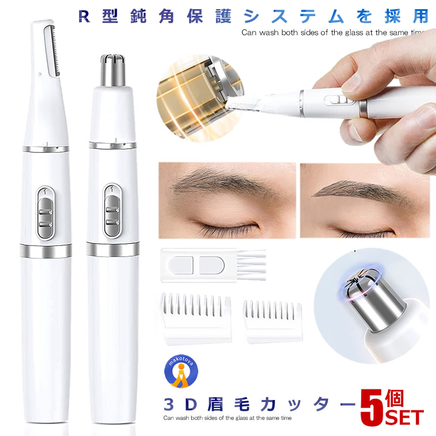 ■5個セット 眉毛 シェーバー R形状 乾電池式 男女兼用 眉毛カット 水洗い 鼻毛カッター フェイスシェーバー 産毛剃り 顔剃り 頬 鼻毛 髭