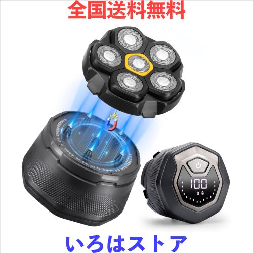 【新品登場!】スキンヘッド用シェーバー 6Dスキンヘッド シェーバー マグネット着脱式 ハゲ用シェーバー 坊主用シェーバー 頭髪シェーバー パワーフル 坊主頭 髭剃り 男性用 IPX6防水 スキンヘッド用バリカン メンズシェーバー 回転式 LEDディスプレイ TYPE-C 充電式
