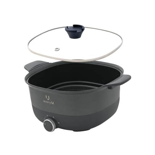 ■every U. 両手電気鍋 5L 温度調整3段階 波型プレート セラミックコーティング ガラス蓋付き 1人用 大人数用 グリル鍋 鍋 焼肉 朝食 目玉