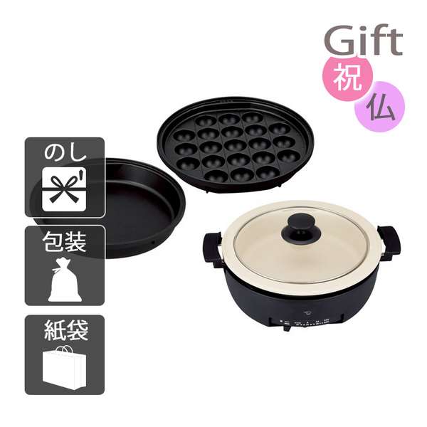 商品サイズ(cm)/溝つきプレート装着時:幅約33.4*奥行約35.6*高さ約10/たこ焼きプレート装着時:幅約33.4*奥行約35.6*高さ約10/深なべ装着時(ガラスふた含む):幅約38.5*奥行約35.6*高さ約22 質量/溝つきプレート装着時:約2.1kg/たこ焼きプレート装着時:2.4kg/深なべ装着時(ガラスふた含む):約3.0kg 電源:AC100V 50/60Hz*定格消費電力:1300W*温度調節範囲:保温*約250* 電源コード長さ:約1.8m 付属品:深なべ、溝つきプレート、たこ焼きプレート、蒸し板、仕切り板